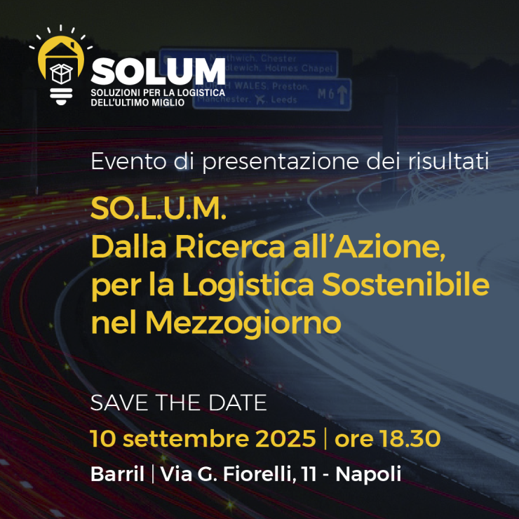 Il Progetto SO.L.U.M è stato finanziato tramite un bando pubblico legato allo Spoke 10 “trasporto merci e logistica”, parte del programma del Centro Nazionale per la Mobilità Sostenibile (MOST), con fondi del Piano Nazionale di Ripresa e Resilienza (PNRR), missione 4.